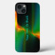 Uma imagem fractal azul, verde e laranja com estrelas no fundo. Interpretação do fenômeno da Mecânica Quântica (física) conhecido como "emaranhamento quântico". Adicione seu próprio texto.