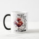 Caneca de boa qualidade, bom tamanho, não parece ser aquela louça que trinca ou descasca. Com os cuidados necessários, irá ter boa durabilidade. Antes de se colocar a bebida quente, ela fica preta, mas numa cor bem brilhante. Meu namorado é DJ e encomendei esta caneca pra um café da manhã com o pessoal da equipe! Sei q será o maior sucesso...em breve sei q vão pedir pra eu encomendar pra eles, e penso em fazer com o nome da empresa também. A caneca é muito legal, a coisa da trasmutação...mas o q não ficou muito legal foi a impressão da imagem da foto, não ficou como a foto q enviei...sei q mandei uma foto q é uma sombra, mas se as cores q estão em voltam aparecessem, ficaria bom. Na parte da frente ficou boa, mas atrás dele, a iluminação azul não saiu, ficando assim muito escuro, e não dá pra ver q é a sombra de uma pessoa. Se a Zazzle tivesse me enviado um e-mail dizendo q isso aconteceria, eu teria enviado uma foto mais clara, mas como a imagem de teste q tenho no site está nítida, pensei q fosse ficar assim. O chato q a caneca é presente, e a pessoa q ganhou, não consegue se ver na foto. Ficou sem propósito no final das contas. =(