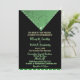 O Convite Moderno para Casamento Elegante Preto e Verde apresenta um flap de envelope dourado falso com pernos simulados. Este belo convite dá uma sensação elegante e sofisticada. O convite perfeito para qualquer estação.