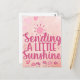 Espalhe amor e alegria com o cartão postal Enviando um Pouco de Sol! Este belo cartão de alta qualidade foi impresso em papel premium e é adornado com cores vibrantes e inspiradoras que trarão um pouco de sol para qualquer quarto. Mostre seu estilo enquanto faz alguém sorrir com este cartão inspirador. É perfeito para qualquer ocasião. Adquira o seu hoje e comece a enviar um pouco de sol!