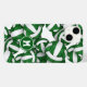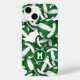 Essa capas de iphone tematizada de vôlei para meninas apresenta volichões verdes e brancos variados em tamanho arranjado em um padrão aleatório em um fundo branco personalizável — os painéis verdes dos volleybolas são misturados com um padrão caleidoscópico floral para uma aparência escancarada e artística que ainda é esportiva - personalize seu monograma - por katz_d_zynes