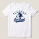 Camisa de Capa Curta Personalizada de Futebol para Mães - mostrada em Branco com impressão Azul Marinho. As cores podem ser personalizadas. Design apresenta um logotipo de futebol na moda e capacete com texto de script esportivo. Personalize com o nome da equipe de futebol do seu jogador, número de camisa.