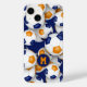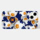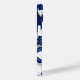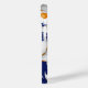 Esta capas de iphone de tema de futebol apresenta bolas de futebol azul, laranja e branco de tamanho variado dispostas em um padrão aleatório em um fundo azul personalizável — personalize seu monograma, letra de diversidade ou número de camisa — por katz_d_zynes