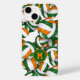 Esta capas de iphone tematizada de vôlei para meninas apresenta volichões verdes, laranja e brancos de tamanho variado dispostos em um padrão aleatório em um fundo branco personalizável — os painéis verde e laranja do volleyball são misturados com um padrão caleidoscópico floral para uma aparência esporosa e artística que ainda é esportiva - personalize seu monograma - por katz_d_zynes