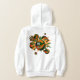 O capuz de basquete desta garota divertida apresenta uma "explosão" de bolas de basquete de tamanho variado que têm painéis coloridos verde e laranja e formas de estrelas laranja, verde e branca - personalizadas com o nome do atleta, o monograma e o número de camisa - o design está na parte de trás do capuz mas pode ser movido ou duplicado na frente - por katz_d_zynes