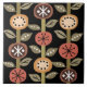 Este meio século retrógrado inspirou a arte abstrato da década de 1950, com flores em pedúnculos com linhas e pontos. Verde, amarelo, castanho e vermelho dessaturados sobre fundo preto.