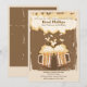 Um convite com tema de cerveja e charme retrô. Ele apresenta duas canecas de cerveja espumante contra um fundo marrom e bege desgastado. Perfeito para celebrações de aniversário, despedidas de solteiro, celebrações de promoção, festas de despedida e muito mais.