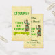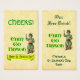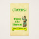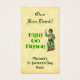 Um ingresso de bebida de festa do Dia de São Patrício personalizado no tamanho de um cartão de visita, com letras celtas e em inglês antigo na frente e no verso, e arte retrô de um rapaz irlandês brindando com um cálice de prata em um fundo de pergaminho falso.
