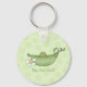 Ervilha no Pod - chaveiro personalizável com uma pequena ervilha bonitinha na vagem e uma margarida branca sobre um fundo verde de espiral. Editar texto no espaço fornecido.