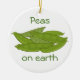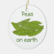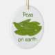 Este ornamento cerâmico feito sob encomenda do design do amante do vegetariano tem uma imagem de ervilhas verdes no vagem.
