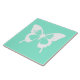 Esboço digital de uma borboleta, adaptado a partir de uma ilustração de safra e colorido digitalmente - branco sobre um aquamarino claro / fundo verde-marinho