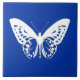 Esboço digital de uma borboleta, adaptado a partir de uma ilustração antiga e colorido digitalmente - branco sobre fundo azul cobalto profundo