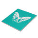 Esboço digital de uma borboleta, adaptado a partir de uma ilustração vintage e colorido digitalmente - branco num fundo azul-turquesa profundo / pavão