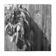 Uma bela imagem em tons de cinza da secagem de sarna fresca contra uma parede de madeira de celeiro rústica.