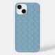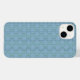 Esta capa de telefone tem um deco de arte design de meio círculo verde conectando-se a linhas em um campo de azul.