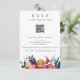Convite de RSVP para casamento boêmio rústico moderno ou outro evento com código QR para digitalização no site e um script de tipografia manuscrita editável e sofisticado, apresentando uma borda de buquês de flores boêmias em burgundy vermelho, azul-marinho e roxo-escuro e um círculo monogramado em dourado metálico falso. +++++++++++++ Fácil de personalizar com seus detalhes! Adequado para casamentos rústicos elegantes ao ar livre no jardim, chá de bebê, festa de aniversário, noivado, chá de noiva ou outras celebrações e recepções.