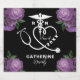 Etiqueta de champanhe de Festa de formatura Floral Nursing School. Símbolo caducius médico com estetoscópio em forma de coração. A Festa de formatura Nurse Registrada Floral Personalizada Nurse fornece fundo escuro com florais de brilho de ouro roxo. Adicionar ano de graduação e nome do formando.
