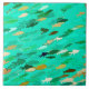 Escola de peixes num oceano verde-aquamarino - tons de verde, aqua, ouro e branco