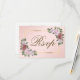 Placa rsvp floral elegante e de casamento dourado com opções de refeições com rosas rosa pinceladas e verde em volta de uma armação dourada sobre um fundo de gradiente de blush. Itens correspondentes disponíveis.