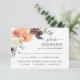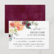 Complete seu conjunto com este cartão de RSVP de casamento coordenado, apresentando um canto floral em aquarela em tons de borgonha, rosa e outono quente. Inclui espaço para nomes, resposta de presença e uma seção fácil de seleção de refeição. Um layout limpo e moderno mantém tudo legível, combinando com um tema de casamento floral de outono romântico.