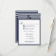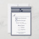 Marinho náutico azul engole a opção de menu RSVP de convites 2 - o design frontal apresenta uma faixa âncora com um contorno que roda ao longo das bordas da placa. Os designs e o texto são azuis marinho sobre um fundo branco. O design traseiro continua a faixa ao redor da placa e as cores do contorno e do plano de fundo já foram comutadas, onde o contorno é branco e o plano de fundo é azul marinho. No meio estão duas andorinhas em voo, trabalhando juntas para carregar uma âncora em uma corda. Por padrão, o papel é definido como estoque básico de convites, mas pode ser alterado clicando em 'escolher seu estilo' e usando a caixa suspensa Papel, selecione uma das opções. Cada convite vem com um envelope branco. Para alterar a fonte, o tamanho da fonte ou a cor da fonte, clique no botão personalizar abaixo do convite RSVP Náutico. Observe que você pode ter que personalizá-lo se determinadas palavras forem muito longas e, portanto, ele ajustado melhor. Se estiver satisfeito com a configuração da fonte, você poderá usar o recurso personalizar para alterar as informações da demonstração para seus detalhes pessoais. Clicando nas pequenas imagens da frente/traseira da placa com mudança para aquele lado para que ela possa ser alterada. Quando terminar, verifique se as informações aplicadas estão corretas e se você não tem erros ortográficos em ambos os lados da placa. Outros produtos que acompanham este.