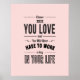 "Escolha um emprego que você ama e nunca terá que trabalhar um dia na sua vida" - poster de citação motivacional inspiradora, com um design de na moda tipografia em rosa-bebê e preto-e-bebê, perfeito para seu escritório ou casa. O presente perfeito para o dono de pequenas empresas, freelancer, empresário, profissional criativo ou qualquer outro fazer que isso aconteça em sua carreira de sonho. Observe que você pode mudar o tamanho do poster para menor se preferir um poster menor - basta mantê-lo na mesma proporção de 16x20 polegadas, por exemplo, 8x10 polegadas irá ajustado bem em um quadro de fotos padrão. O poster também redimensionará maior sem perda de qualidade. Para posters mais inspiradores, posters legal de tipografia e presentes interessantes de na moda, visite: http://www.zazzle.com/bangingifts