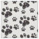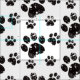 A pata preta de cão esbranquiçada é impressa no tecido branco de fundo. Você pode escolher sua própria cor de fundo