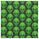 Impressões de cabeça de alienígena verde no tecido de fundo preto. Você pode escolher sua própria cor de fundo