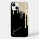 Esta capa de telefone glamourosa tem uma parte superior que é fosco com gotas de luz azul prateada. Nós achamos que ele é fabuloso em preto, mas você pode escolher sua própria cor de fundo escolhendo "Editar Design". Seu nome está em um script branco na diagonal na parte inferior. Bonito!