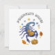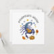 Uma ilustração encantadora do Dia das Bruxas com um escorpião azul amigável e estilizado com um comportamento alegre. Abaixo está uma abóbora esculpida clássica, pronta para a estação assustadora. Acima, uma estrela adiciona à atmosfera festiva, enquanto as folhas do outono se espalham. O texto proeminente no topo declara brincalhão, "É hora de ter cozinhar... algo assustador." A design geral combina os elementos tradicionais do Dia das Bruxas com um toque único e caprichoso.
