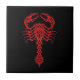 Este escorpião tribal é decorado com redemoinhos e padrões de ponto intrincados. Ambos os pincers do escorpião são aumentados acima e seus cauda e stinger estão apontando o hetero para baixo, criando um teste padrão simétrico. O aracnídeo vermelho brilhante senta-se em um fundo preto puro que cria um contraste bonito. Este design agressivo do escorpião faz para um azulejo atraente e à moda.