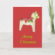 A design neste cartão é de cavalos de madeira talhados e pintados por Julia Morrill