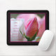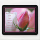 Um rosebud cor-de-rosa bonito com brandamente cor-de-rosa e branco no fundo acentua o 13:13 dos Corinthians da escritura 1. A fé, a esperança, e o amor são a mensagem deste mousepad inspirado. O design tem uma beira preta grossa com as riscas cor-de-rosa dentro da beira.