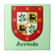 Apelido espanhol * Acevedo * Azulejo decorativo da Proteção Familiar. O plano de fundo é transparente para que você possa escolher uma cor que ajustado seu decoro, basta clicar em Personalizar logo abaixo da imagem. O seu nome é de origem espanhola? Podemos pesquisar seu nome e fornecer um Azulejo, Camisa ou outro produto com seu escudo familiar aqui no Zazzle! Apenas nos pergunte. Excelente de presentes ou de reagrupamento familiar. Mostre seu Orgulho Familiar!