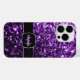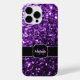 Personalize a capas de iphone cintilante falsa com seu nome e nome inicial. Púrpura escura sofisticada, deslumbrante, brilhante, vívida, luxuosa, rica e vibrante glamour. Brilhante glamourosa violeta brilhante brilha. Foto de faíscas roxas, não de brilho real!