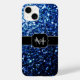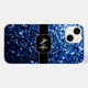 Personalize com seu nome e nome inicial. Capa de telefone cintilante simples com brilhantes brilhantes azuis glamourosos brilhantes. Foto de faíscas azuis não de reluzentes reais!