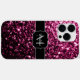 O brilho brilhante brilhante brilhante preto cor-de-rosa esmaga a capas de iphone Monograma de Cascata. Personalize com seu nome e nome inicial. Lindos brilhos brilhantes, brilhantes, brilhantes, cor-de-rosa e glamourosa. Foto de faíscas cor-de-rosa não é uma falha real!