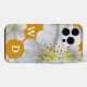 A design apresenta uma apresentação artística abstrato de uma flor branca de primavera, aproximando-se do belo centro da flor, juntamente com dois (2) campos de tipografia personalizáveis para monograma ou outra personalização incorporada à trabalho de arte - todos apresentados sobre um ouro escuro, fundo amarelo-marrom. Para solicitações ou perguntas especiais, entre em contato com o artista em wafadahdalcreates@gmail.com. © Wafa Y. Dahdal - Todos os direitos reservados.