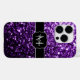 O brilho brilhante brilhante do fio púrpura esmaga a capas de iphone Monograma de Cascata. Personalize com seu nome e nome inicial. Lindos brilhos brilhantes roxos roxos e brilhantes. Foto de faíscas roxas, não de reluz real!