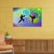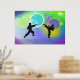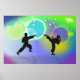 Poster vibrante de roxo, azul e verde com duas figuras de Artista Marcial, uma decoração de excelente para um quarto de Karate, casa de Taekwondo ou paredes de sala de aula dojo.