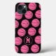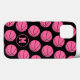 Esta capas de iphone de basquete de meninas fofinhas apresenta um padrão ansioso de bolas de basquete cor-de-rosa em um fundo preto - personalize com seu monograma - por katz_d_zynes