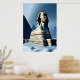 Esfinge na neve com pirâmide ao fundo. Esta é uma arte gerada por IA.
