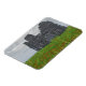 Uma cena 3D criou em Vue, mostrando o local de uma batalha antiga, com apenas as ruínas desmoronantes de uma torre de pedra medieval e flores vermelhas na grama para comemorar. A chuva em queda e o efeito de aquarela macia aumentam a tristeza da cena do topo da colina.