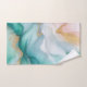 Ondas em forma de mármore de esmeralda, teal, rosa-pincel e azul-céu, entrelaçadas com delicadas veias de ouro.