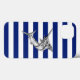 Um cromo prateado como design de marlin num decor de listras azuis marinho. Um presente náutico moderno. Use o link "Mensagem" para entrar em contato conosco com suas solicitações especiais de design ou para obter assistência com qualquer um de seus projetos de personalização.