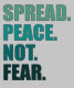 Espalhar a paz sem medo é uma boa vibração de que temos de nos espalhar. O que seria do mundo sem paz? Ao ter esta simples design de tipografia, você definitivamente dá forte inspiração aos outros para sempre espalhar a paz, não o medo ou a guerra. O vamos espalhou a paz pelo tema pacífico das nossas t-shirts, capuzes, canecas, etc.