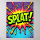 Este poster dinâmico captura um momento de pura e bagunça no estilo dos quadrinhos retrorreflectores. O trabalho de arte explode com uma explosão de cor, à medida que a palavra "SPLAT!" é trazida à vida com letras ousadas, gotejantes que parecem uma luta gloriosa de tinta congelada no tempo. O texto vibrante do verde limão e os pratos cor-de-rosa, amarelo e azul circundantes criam uma vibração enérgica e caótica que é impossível de ignorar. Justamente com as linhas limpas das estórias de banda desenhada e o fundo vintage de ponto médio, esta peça é uma homenagem divertida aos efeitos sonoros clássicos das histórias em quadrinhos. É especial porque é uma peça ousada e alta que transforma uma palavra simples num evento visualmente excitante, perfeito para adicionar um toque de diversão rebelde e energia de pop a qualquer espaço.