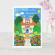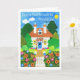 Um cartão "Boa Sorte com Sua Mover" com uma saudação espanhola e uma cabana bonito de uma colagem de papel pintada à mão por Judy Adamson. O dentro é o vazio deixado para a sua própria mensagem e a saudação frontal pode ser alterada contatando-me através da minha loja.
