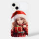 Imagem especial de Natal do iPhone 14 Capas no cobrir traseiro. Esta imagem é uma menina muito bonito diante da cláusula Santa.