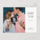 Este cartão com fotos de férias é perfeito para um anúncio de gravidez. Ele diz "Estamos esperando um Feliz ano novo" com um lugar para a data de vencimento e o nome da família, destacando uma foto personalizável. A parte traseira inclui uma mensagem personalizada e é configurada como um cartão de posto para facilitar a correspondência.